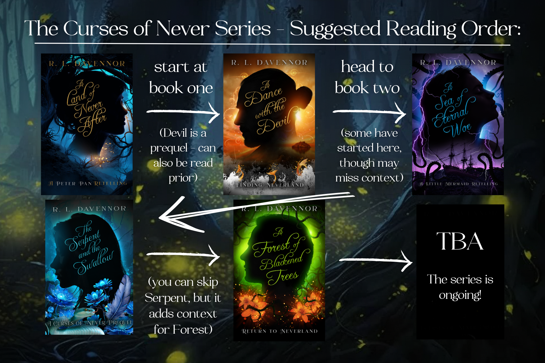 The Serpent and the Swallow is a prequel novella to the Curses of Never Series told from Elvira’s point of view, and features a blooming sapphic romance. It is best read between A Sea of Eternal Woe (Book Two) and A Forest of Blackened Trees (Book Three).